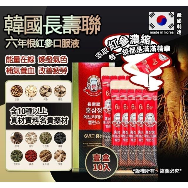 韓國장수련長壽聯六年根紅蔘液一盒10入(一套2盒)(12月頭)