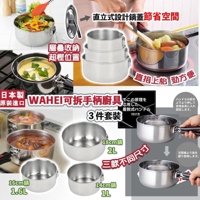 日本製 WAHEI 可拆手柄廚具3件套裝(10月中)
