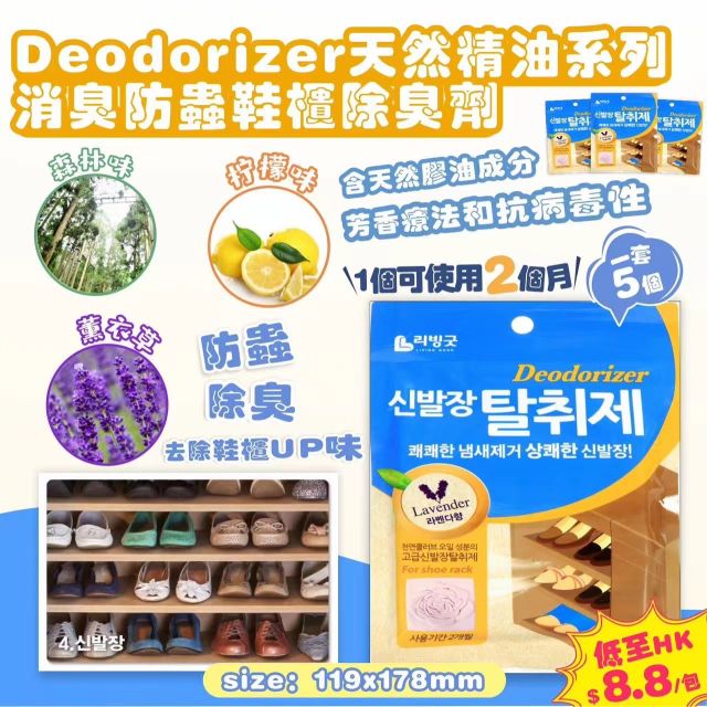 deodorizer天然精油系列 消臭防蟲鞋櫃除臭劑 (1套5個) (1月頭)