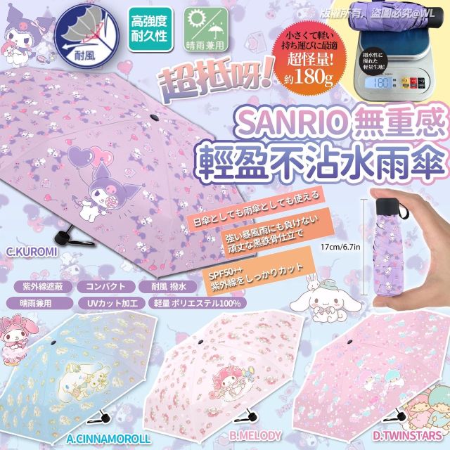 Sanrio 無重感輕盈 SPF+++ 雨傘(12月尾)