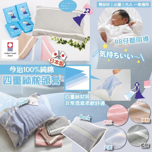 日本製今治100%純棉四重紗枕頭巾(四色隨機) (12月中)