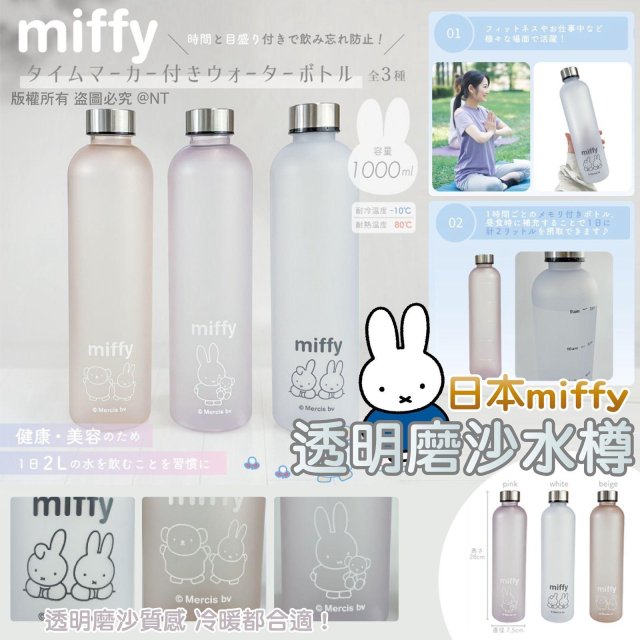 日本MIffy磨砂半透水樽1000ml(顏色隨機)(11月中)