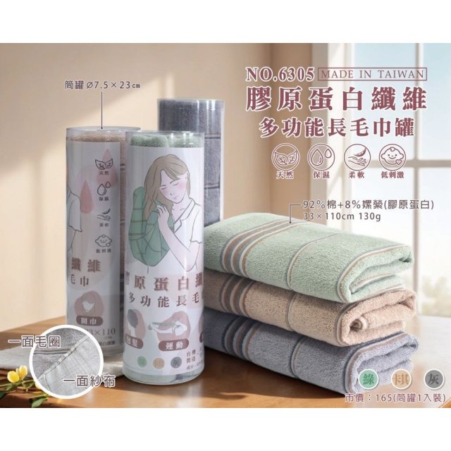 台灣製造膠原蛋白多功能長巾(桶罐裝1入) (11月尾)