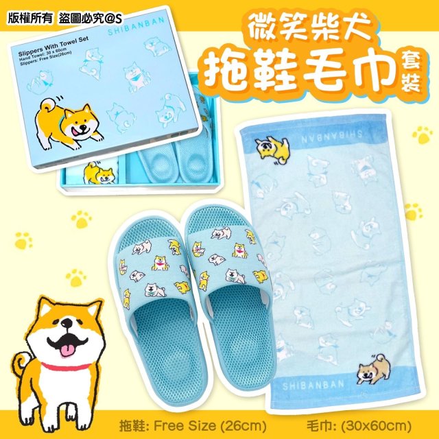 正版 柴犬拖鞋毛巾禮品套裝(10月中)