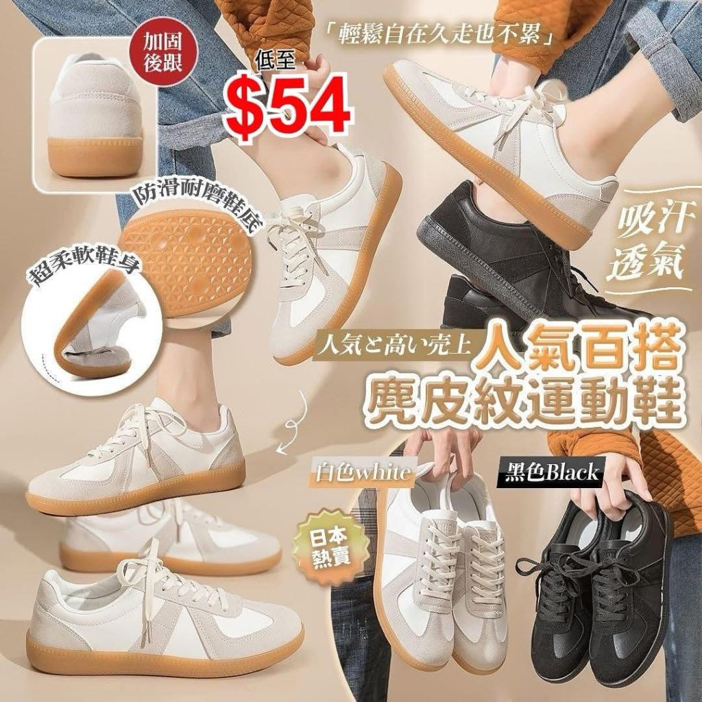 人氣百搭麂皮紋運動鞋,原價2XX❌,今日勁扺價,低至只係54/對咋😱😱😱