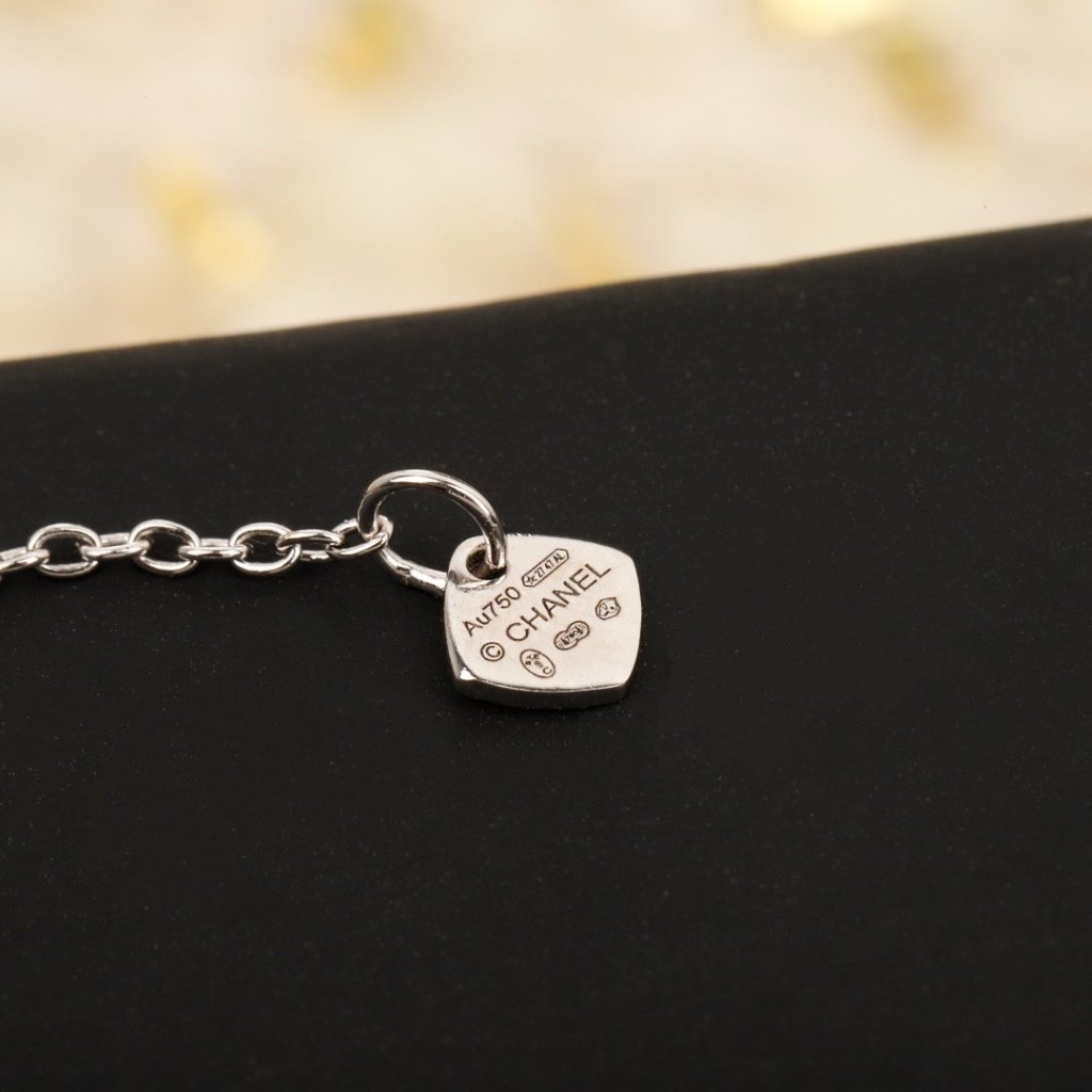 有一個特別的暱稱“水冰月項鍊”,中間主石0.15cts鑽石,是整顆鑽石,鍊子穿著整顆💎,C字母的Logo包圍著這顆鑽石,設計很新穎