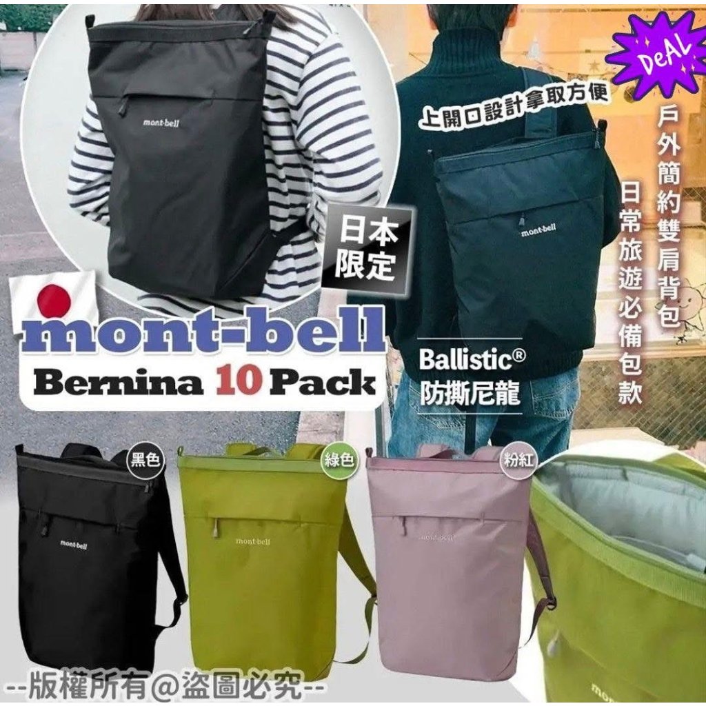 快閃✨ 日本限定 Mont*bell Bernina 10 Pack 戶外簡約雙肩背囊 旅遊季必備包包🎒