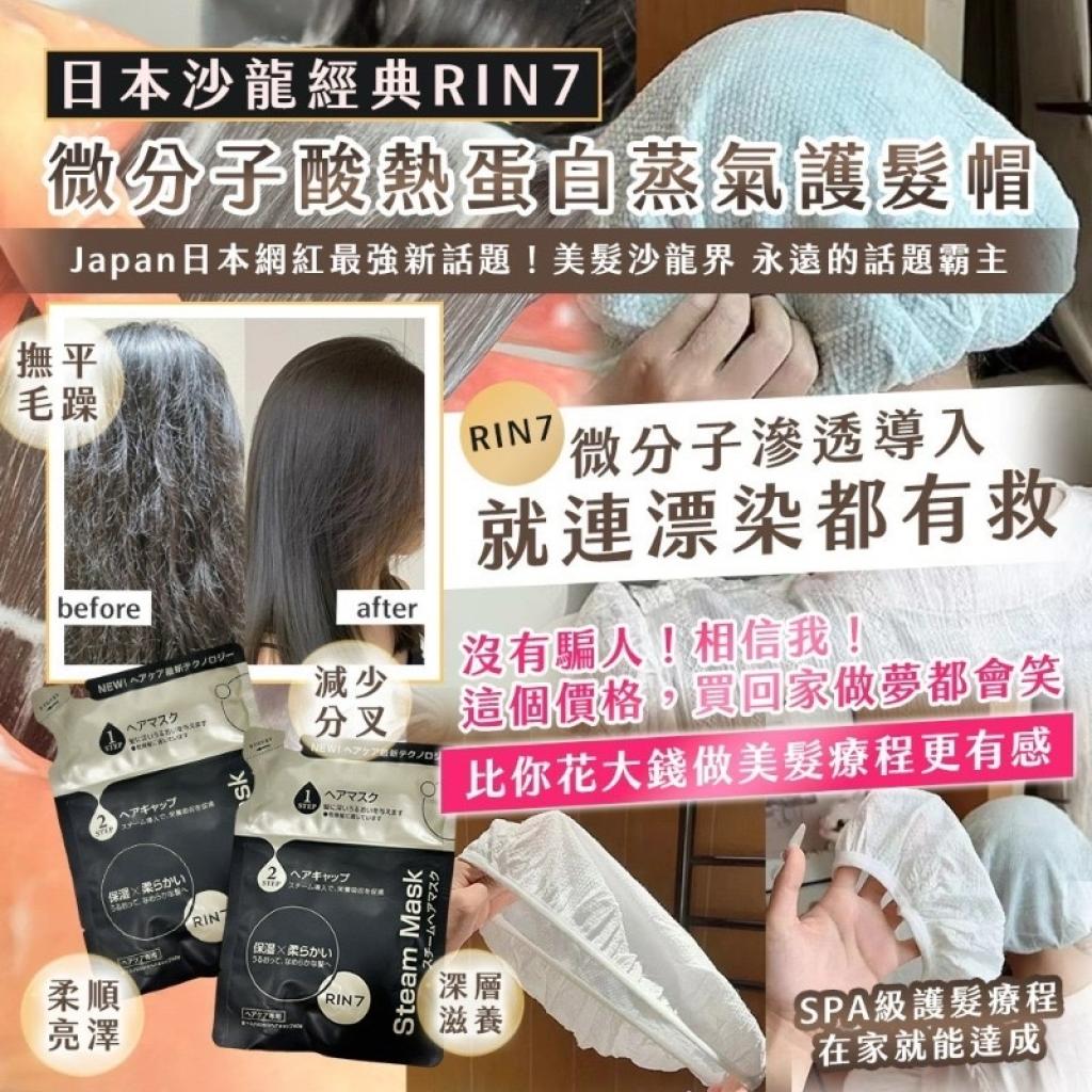 🇯🇵日本沙龍經典RIN7 微分子酸熱蛋白蒸氣護髮帽套裝(2月頭)