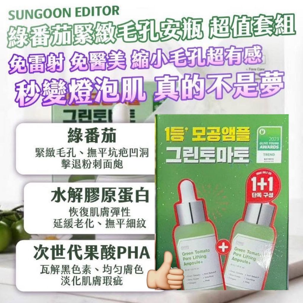 🇰🇷韓國製造 SUNGOON EDITOR 綠番茄緊緻毛孔安瓶 超值套組30ml x2 (約2-3星期到貨)