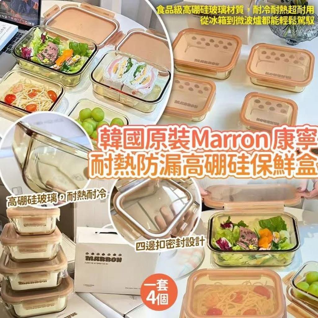 韓國禮盒原裝Marron 康寧琥珀色耐熱防漏高硼硅保鮮盒(一套4個)(約2-3星期到貨)