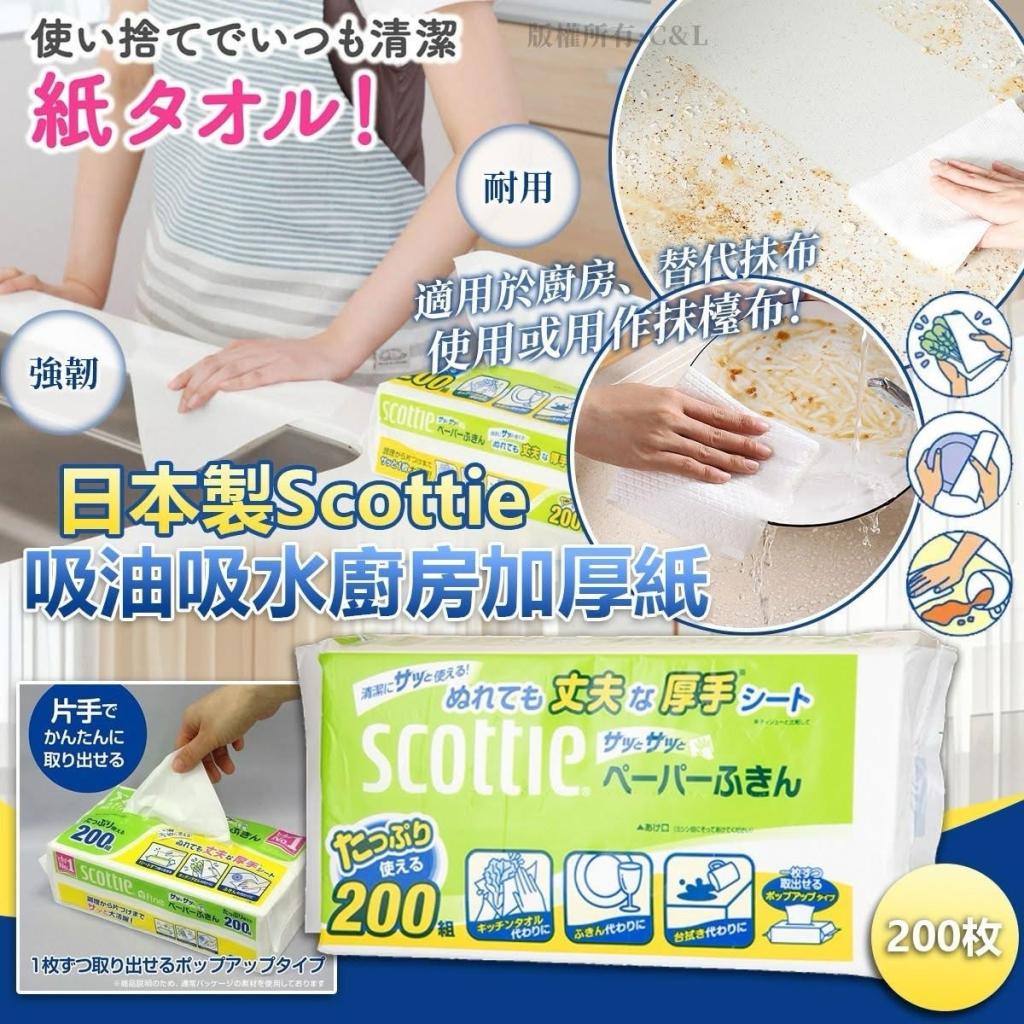 日本製scottie吸油吸水廚房加厚紙200枚(一套2包)(約2-3星期到貨)