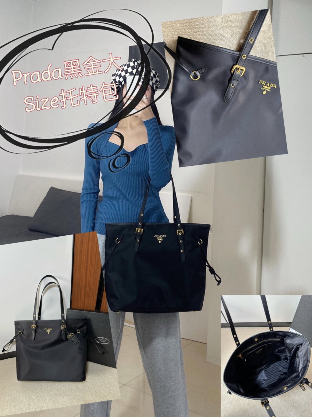 Prada 黑金尼龍托特包(約2-3星期到貨)