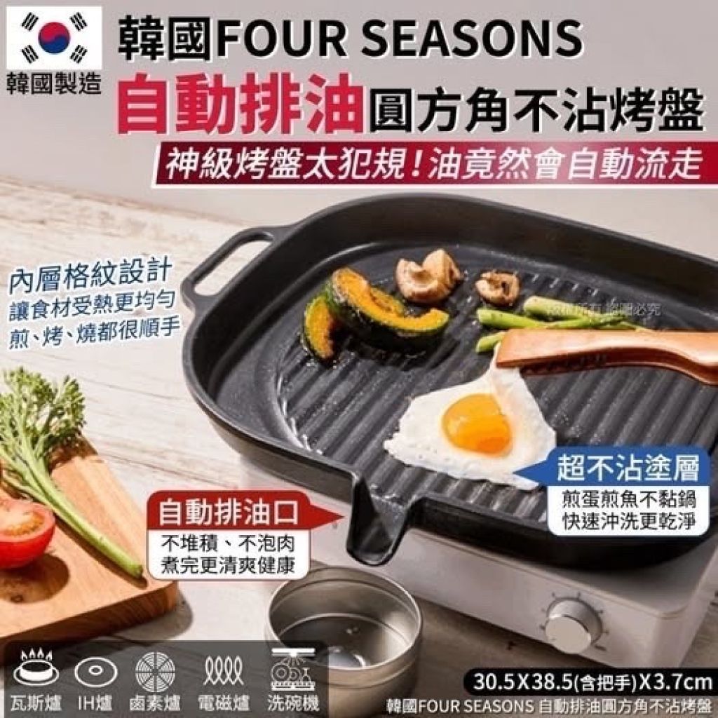 韓國 FOUR SEASONS 自動排油圓方角不沾烤盤(5月頭)