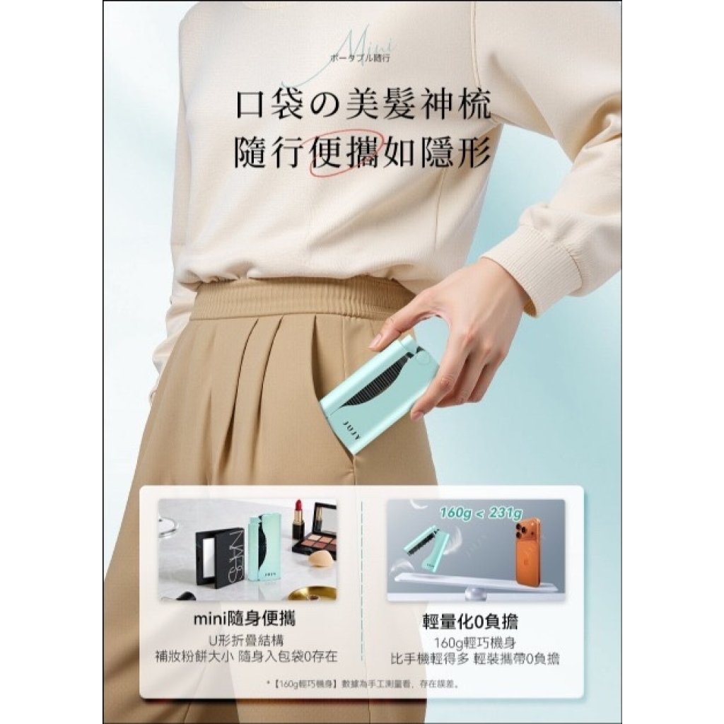 日本JUJY 無線迷你折疊隨時劉海髮尾快速造型NCT恆溫速熱便攜隨身造型梳(3月尾)