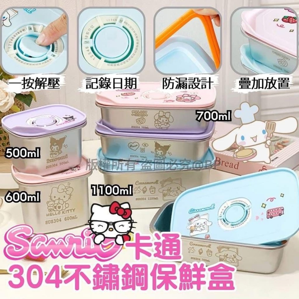 Sanrio卡通不鏽鋼保鮮盒一套4個(約2-3星期到貨)