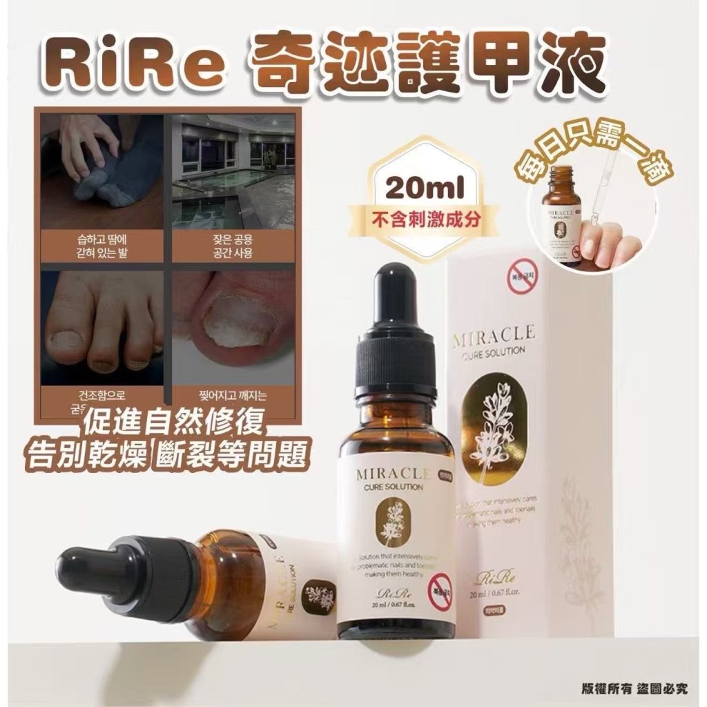RiRe奇蹟修復液是一款專為手腳指甲問題設計的醫藥外品。