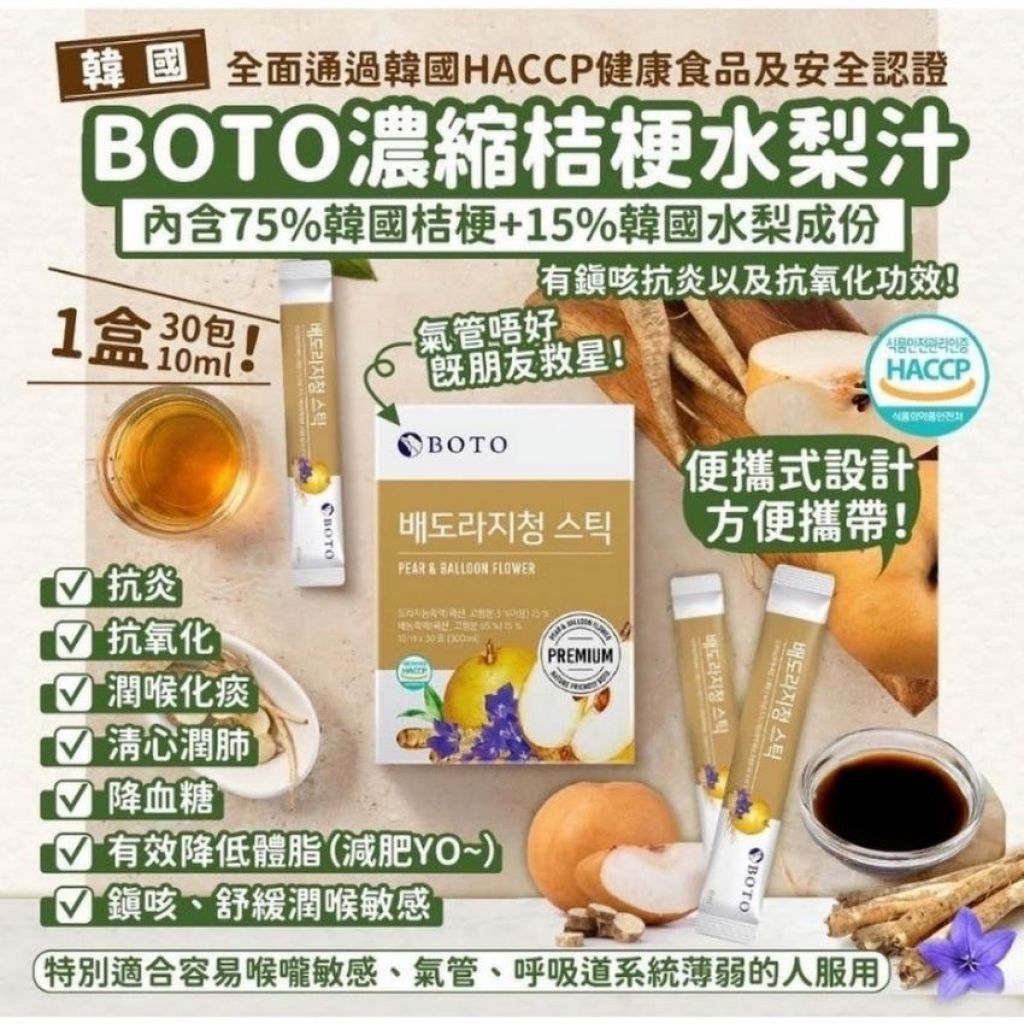 韓國BOTO濃縮桔梗水梨汁(1盒30包10ml) (約1-2星期到貨)